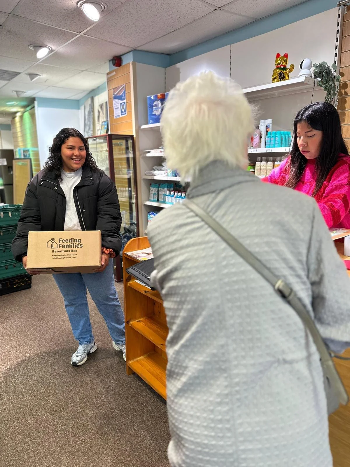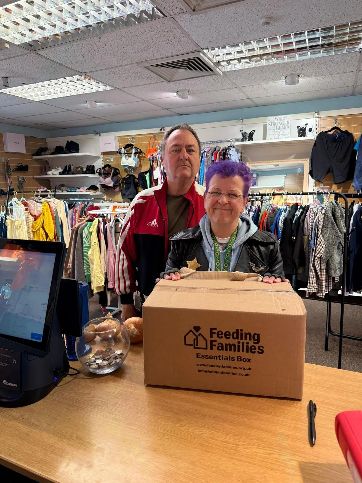 To provide food boxes each week, we work in partnership with Feeding Family; they provide the food boxes, and we bring the support to you. By giving food boxes through Feeding Families, we have been able to support 100 families each week.